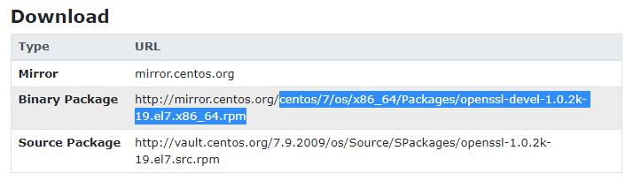 然后在官方的镜像站列表中选择一个离自己近的,或者快的镜像站来下载,这里以阿里云镜像站作为例子,阿里云镜像站的地址是 https://mirrors.aliyun.com/centos/ 然后加上上面的位置信息 7/os/x86_64/Packages/openssl-devel-1.0.2k-19.el7.x86_64.rpm,变成https://mirrors.aliyun.com/centos/7/os/x86_64/Packages/openssl-devel-1.0.2k-19.el7.x86_64.rpm ,就可以直接下载下来了。