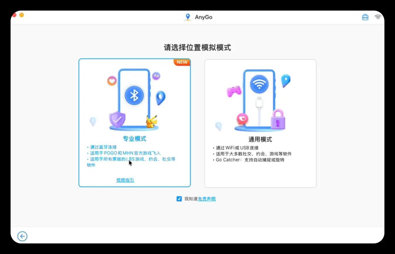 AnyGo 是一款虚拟定位软件,用于修改设备的 GPS 位置。你可以选择: