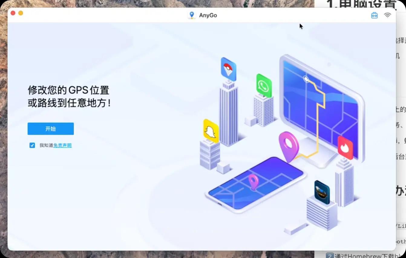 3. 打开 AnyGo 软件(确保 Mac 已开启科学上网)