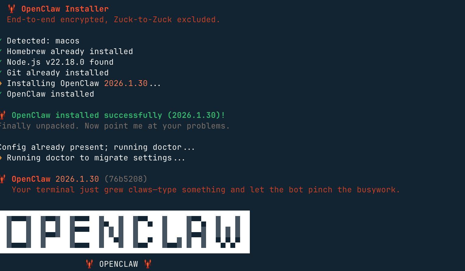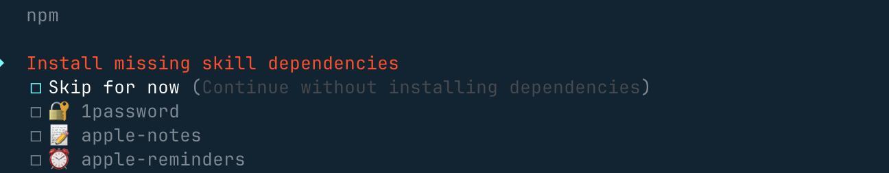 它会完成环境检测,并且安装必要的依赖,还会启动 onboarding(设置向导) 流程。