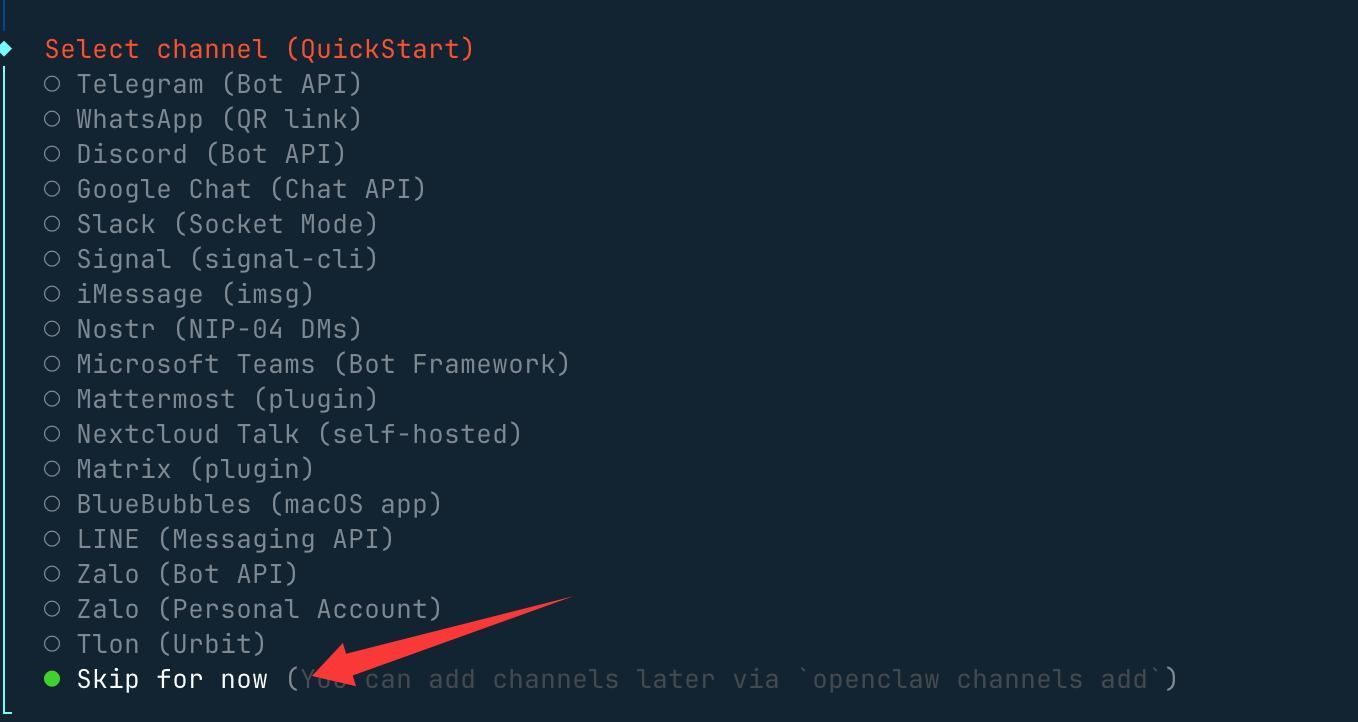 openclaw channels add 添加通道 Telegram / Discord / Slack