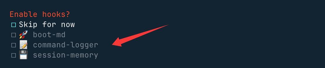 最后这三个钩子可以开启,使用空格按键选择,主要做内容引导日志和会话记录:
