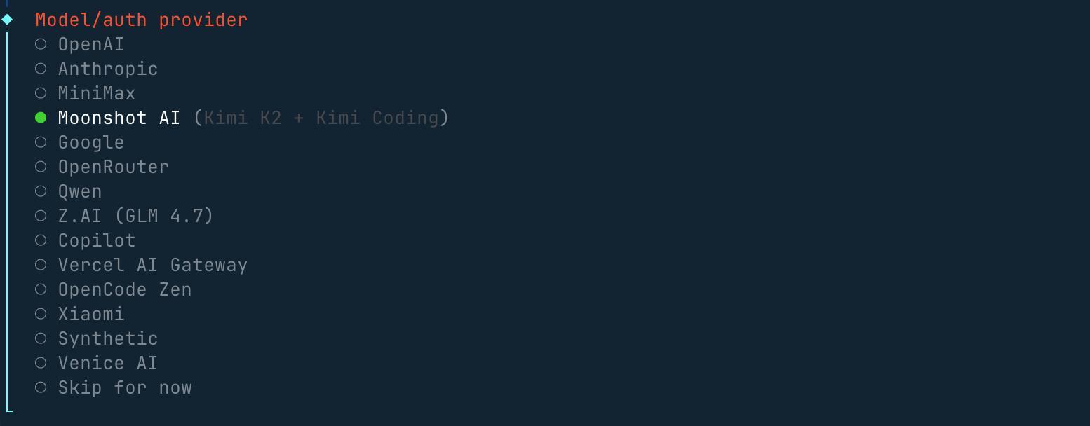 接下来我们需要配置一个大模型,Model/Auth Provider 选择 AI 供应商,国内外的供应商基本都支持。